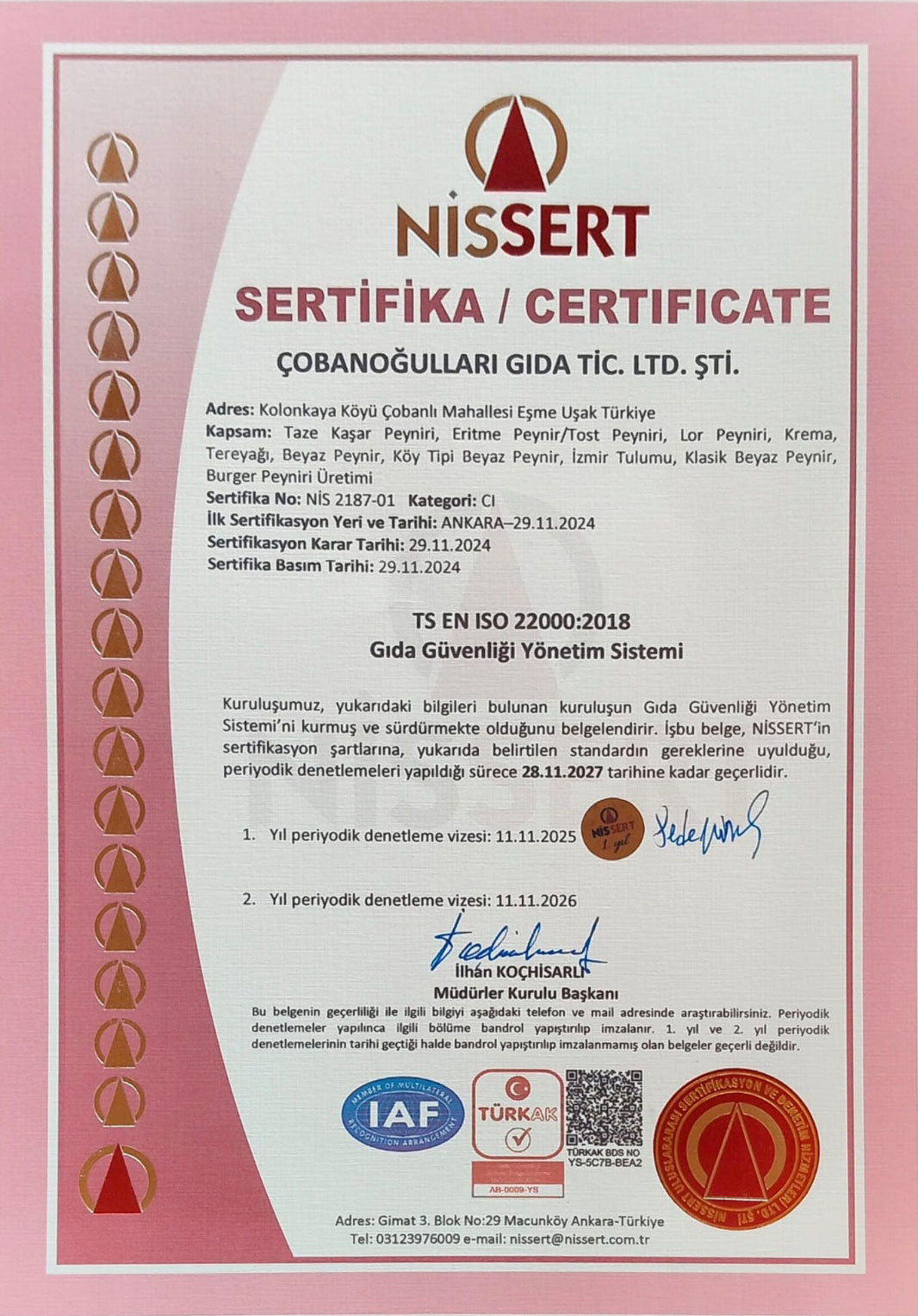 ISO 22000 Standartlarının öngördüğü yöntemlerle, kuruluşumuzun amaç ve kapsamına uygun olarak,